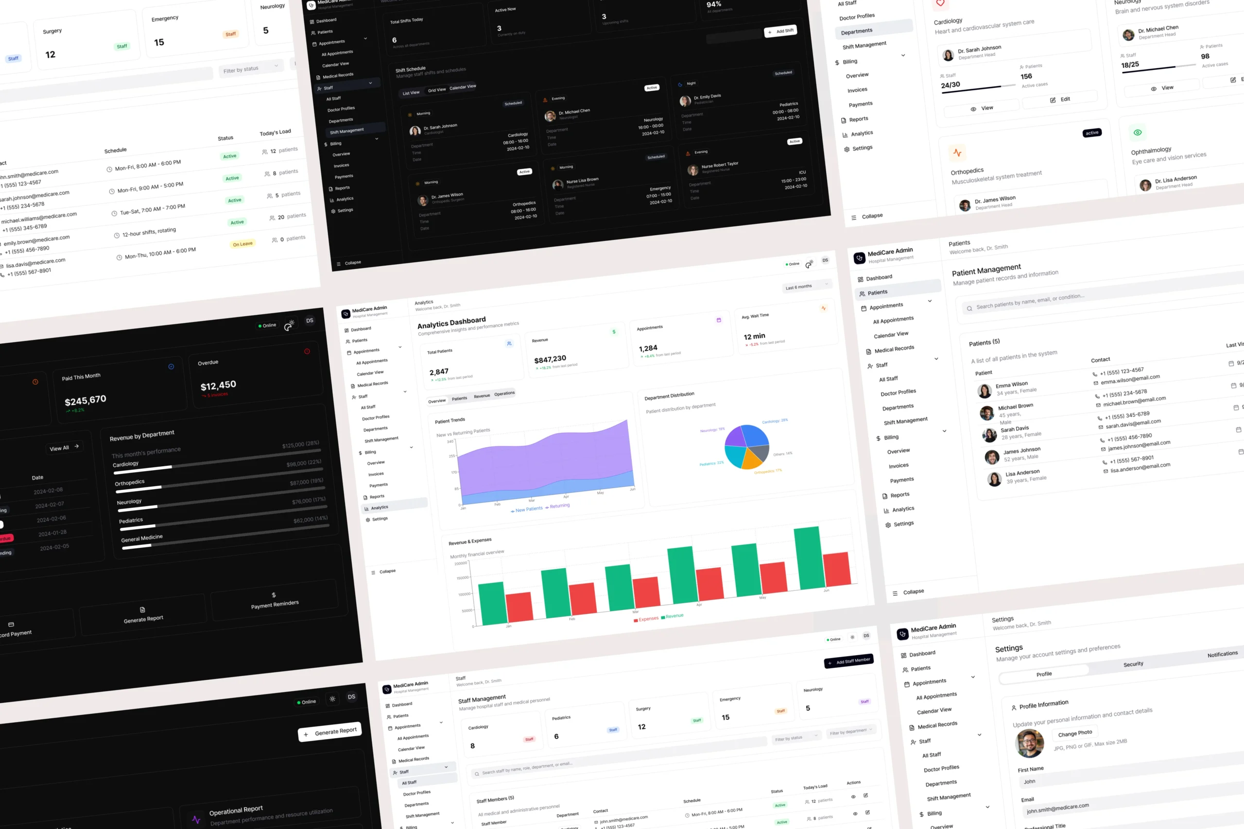 120+ Premium Screens covering every aspect of healthcare management:
